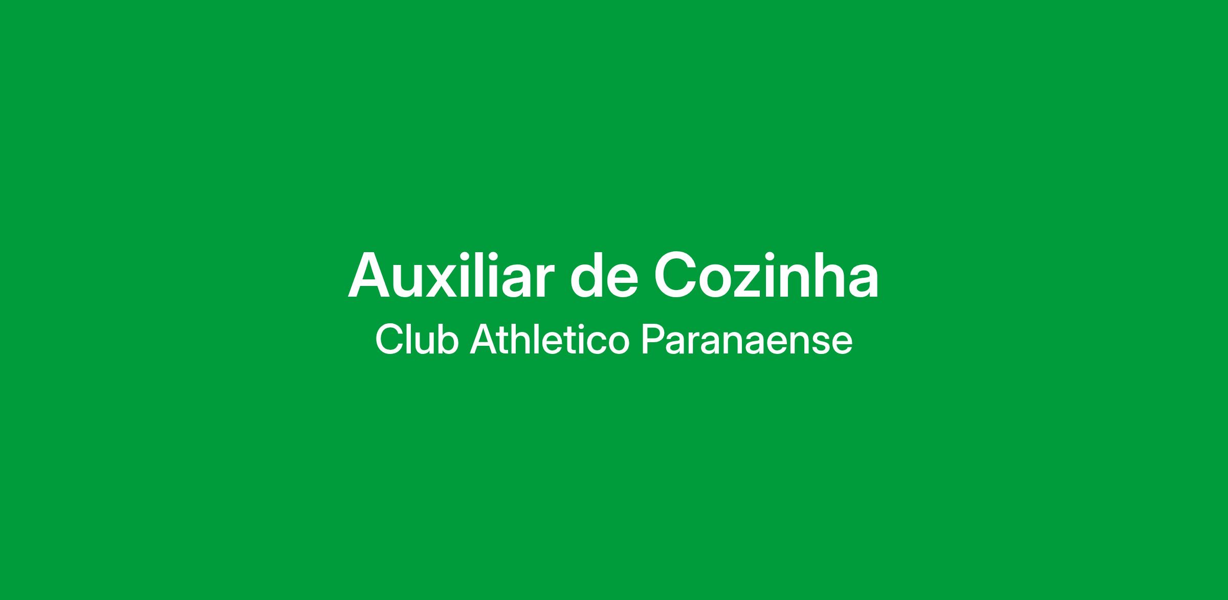 O Club Athletico Paranaense busca um Auxiliar de Cozinha para trabalhar em nosso Restaurante do Centro de Treinamento, localizado no Sítio Cercado.