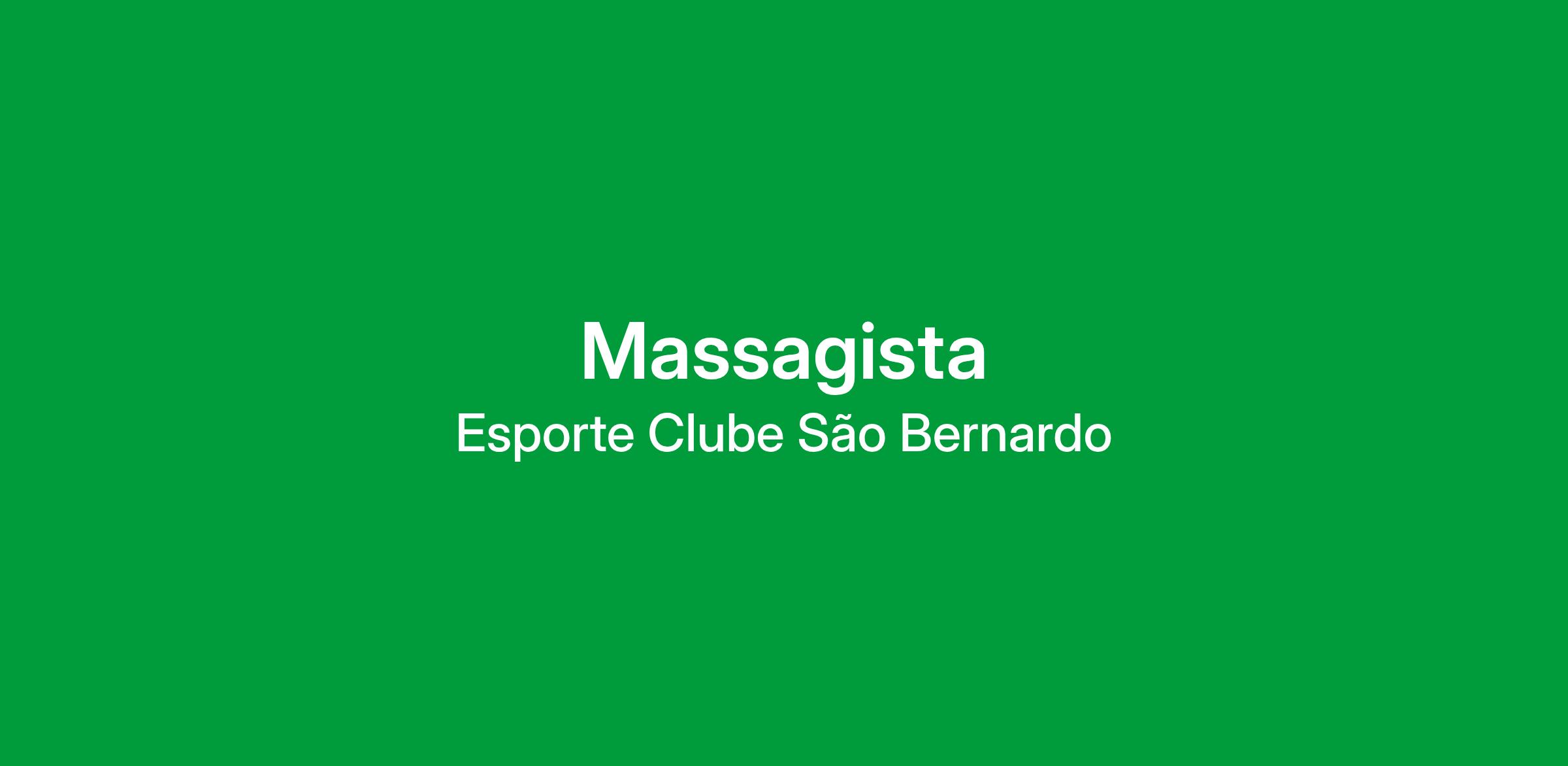 Vaga: Massagista - Categorias de Base no Esporte Clube São Bernardo SAFInteressados enviar currículo.